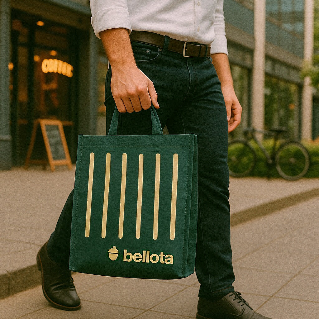 Pero atención: este producto no se vende, es solo una muestra para que puedas verla aquí mismo 👀. La Bolsa Bellota va GRATIS con cualquiera de tus compras, porque sabemos que una buena compra merece una buena compañía.